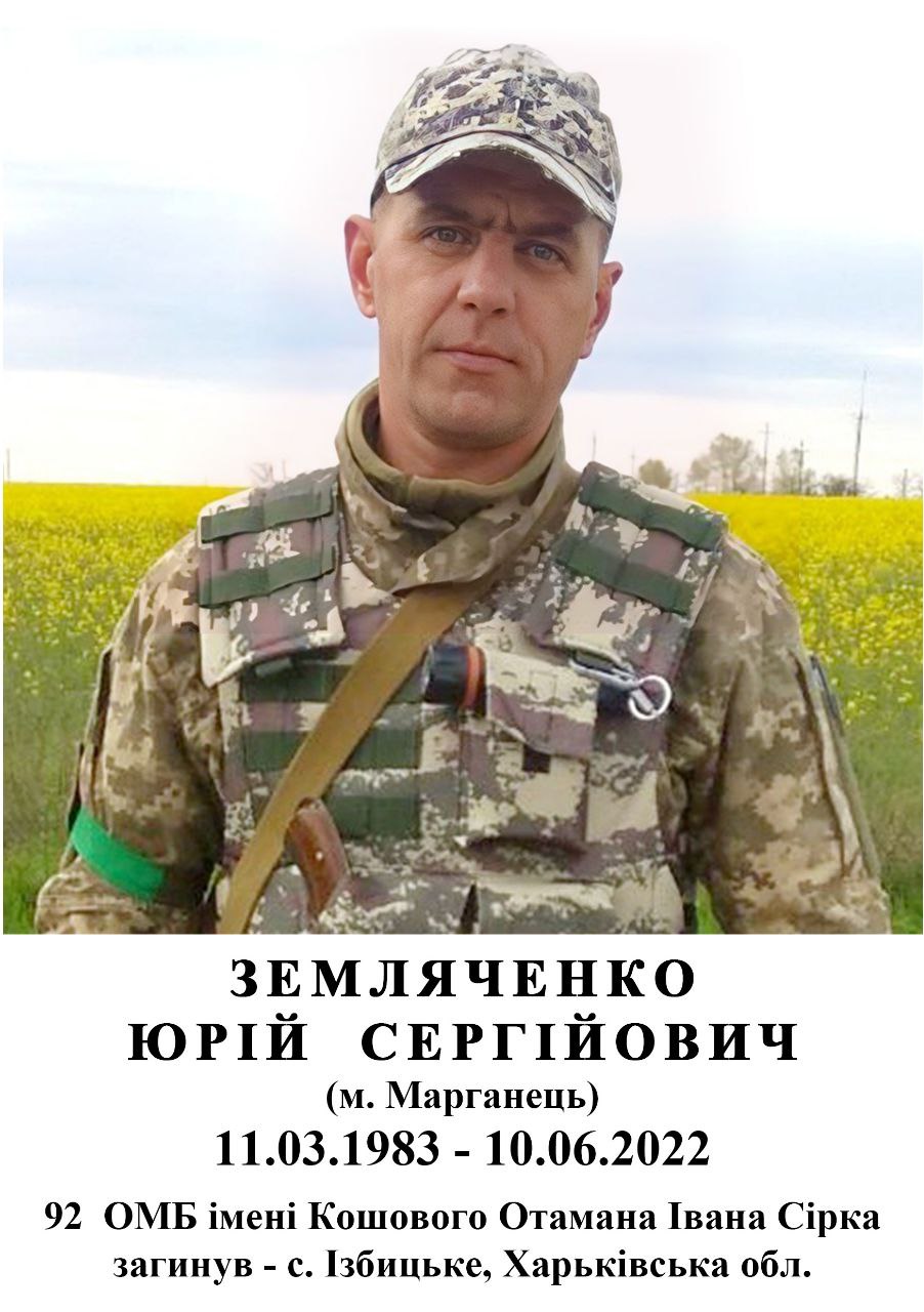 6 листопада 2022 року Юрія Сергійовича Земляченка поховали на Алеї Слави Миколаївського кладовища міста Марганця.